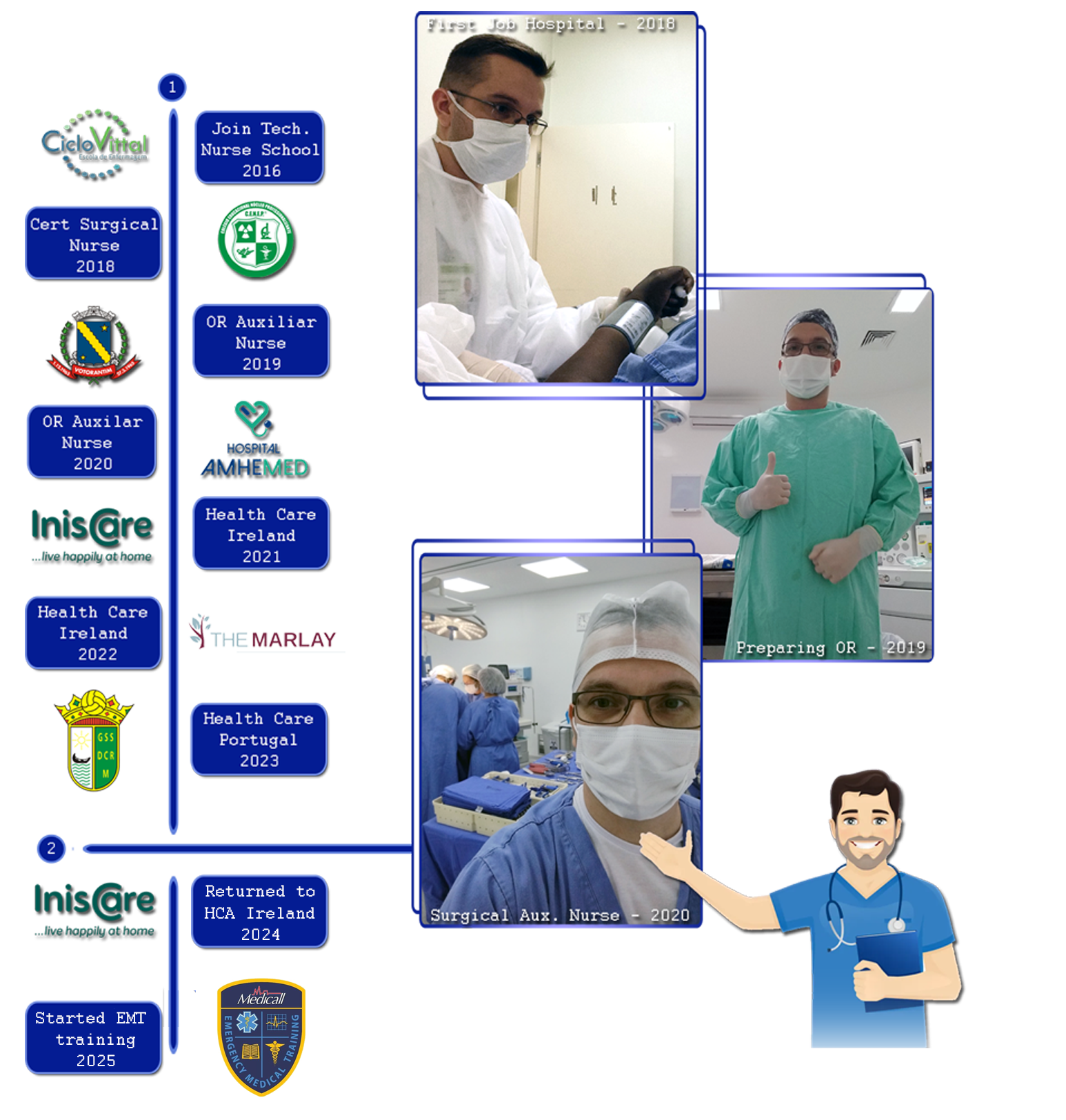 As a nursing technician since 2016, I've gained extensive experience in public and private hospitals, including challenging Covid-19 times. In surgical centers, I served as Assistant Nurse providing essential patient support while utilizing graphic design skills for visual materials and information organization. My healthcare commitment led to teaching at a renowned institution, sharing knowledge with nursing, physiotherapy, and physical education students. In 2021, I moved to Ireland for home care and nursing home experience, then to Portugal focusing on personalized nursing home care. With solid academic background and diverse professional experience, I continuously develop applications to assist caregivers in their daily tasks. Ready to discuss collaboration opportunities.